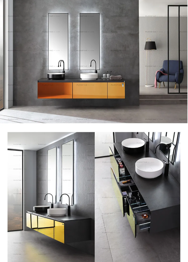 普瑞凡新品幻彩系列展现了色彩在洗浴间的氛围调节功能,幻彩系列以炫彩玻璃为柜门,玻璃表面渐变的颜色根据光线照射和观察者所处的位置不同而变化,从不同角度看会呈现不同的渐变色彩的反射,营造出幻彩流萤,美轮美奂的光影效果,令洗浴空间呈现出更慵懒迷人的氛围。