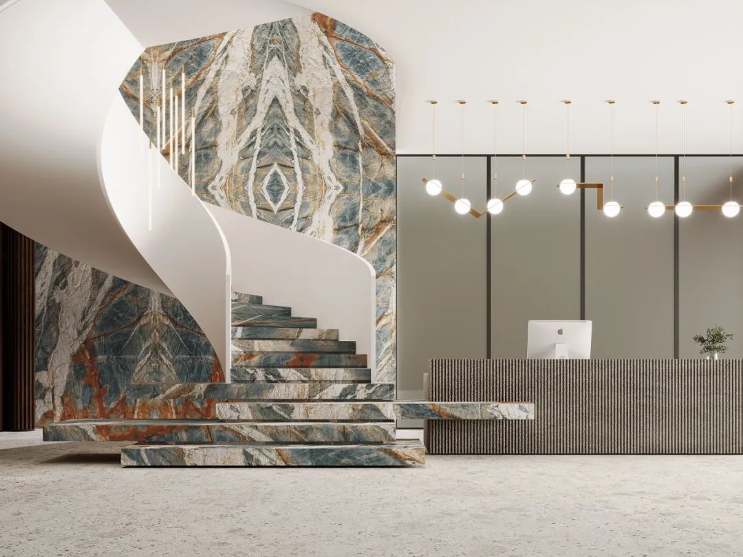 意大利PESARO(佩萨罗) 是一座千年历史文化名城,盛产大理石、油页岩和陶器等。佩萨罗灰白金黄四色蕴藏着大自然的神秘与高贵,多色交错增加空间的明亮感和立体感,复刻天然石材历经时间洗礼后所留下的痕迹,纹理⾊彩⾃然雄浑、质感细腻,⽤来大面积装饰高端空间具有尽无止境的表现⼒。